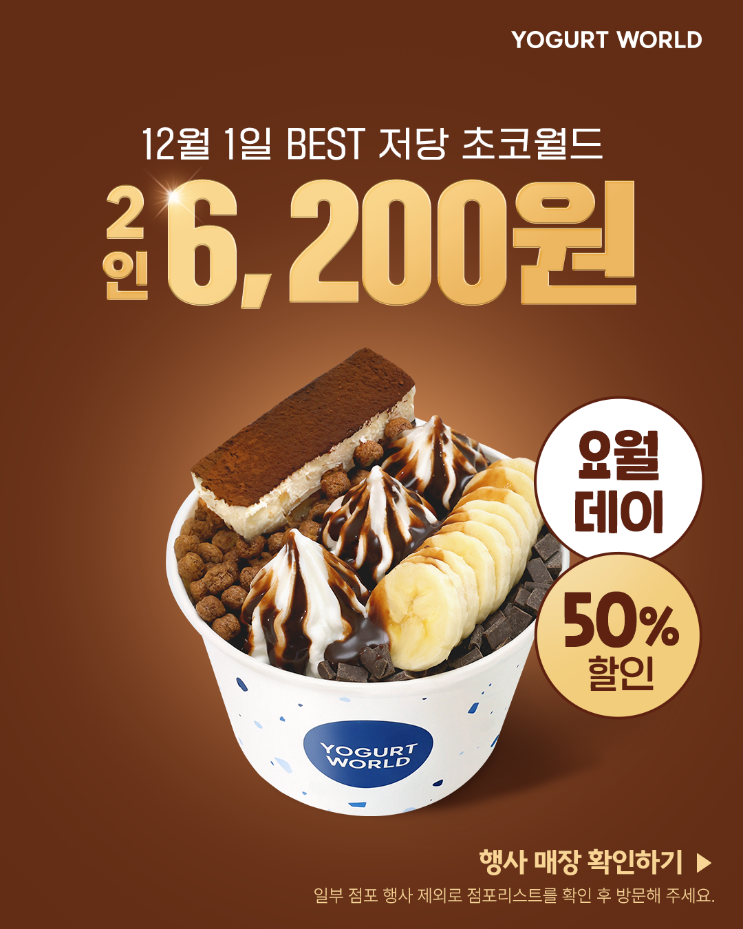 요거트월드, 12월 요월데이 저당 초코월드 반값…역대급 할인
