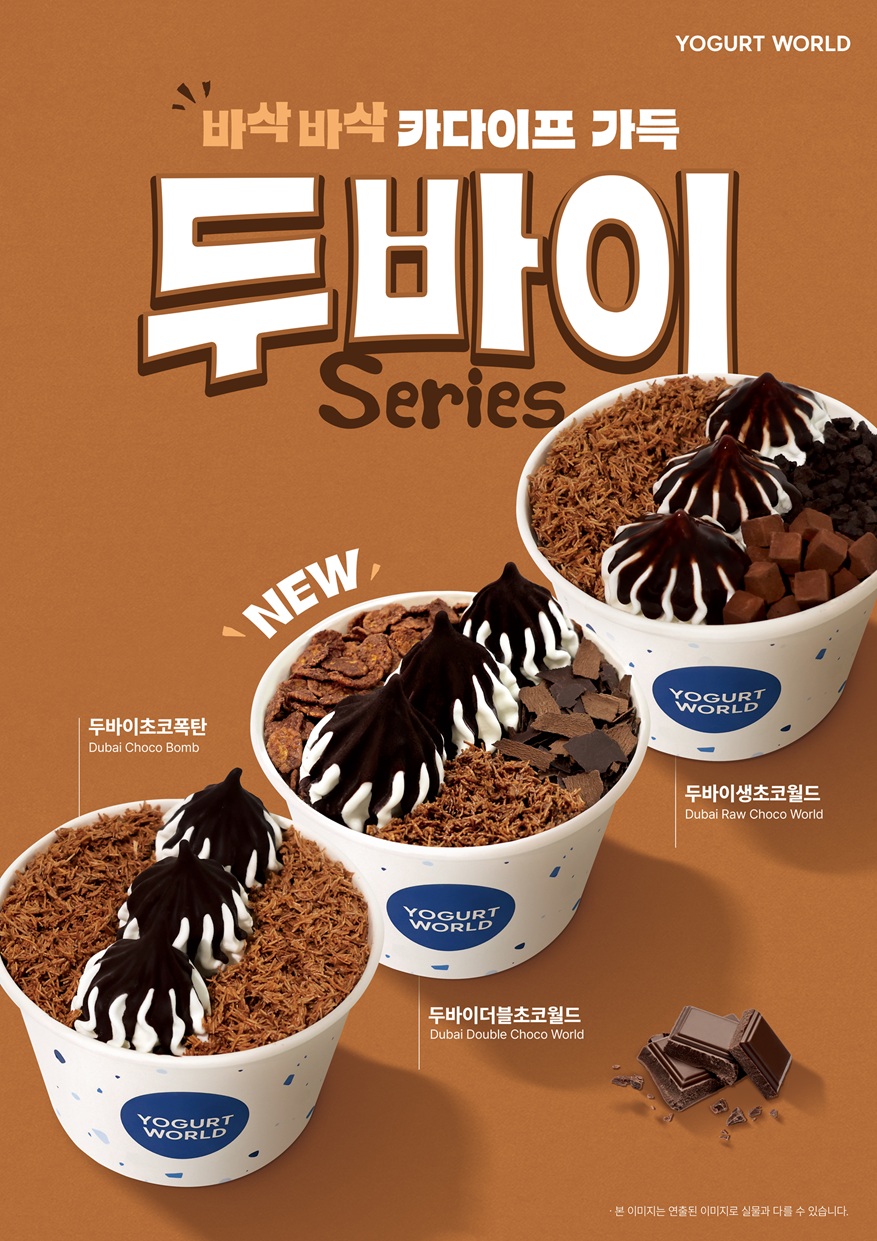 요거트월드의 두바이초코 시리즈는 헤이즐넛 카다이프의 진한 초콜릿의 풍미와 식감으로 인기를 얻으며 작년