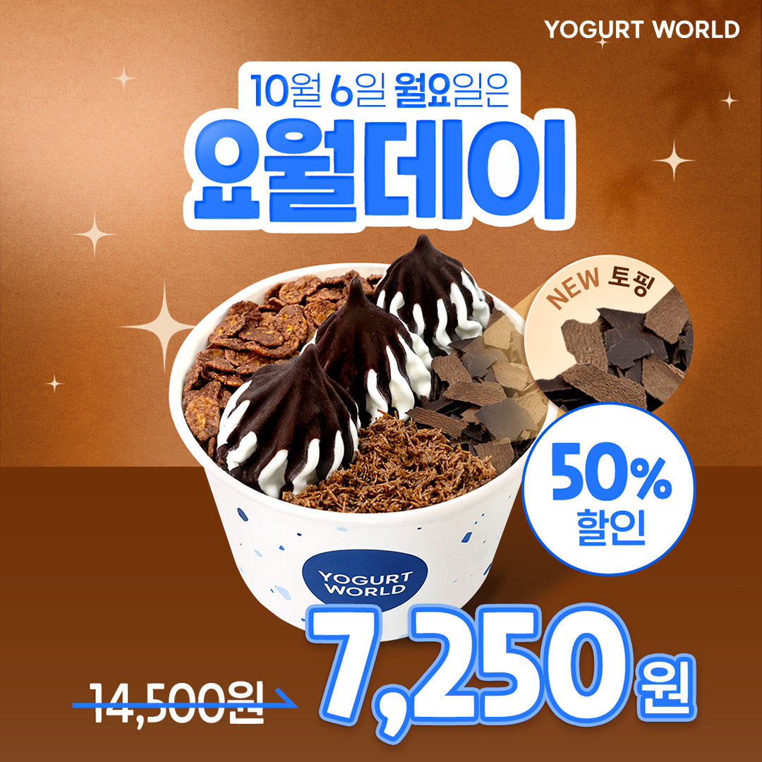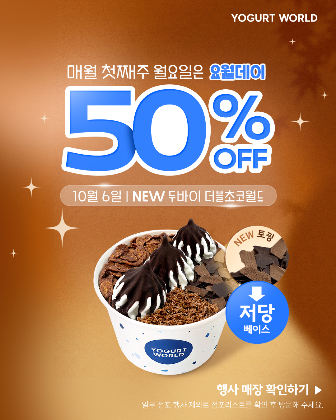 요거트월드, 10월 요월데이 두바이더블초코월드 50% 할인